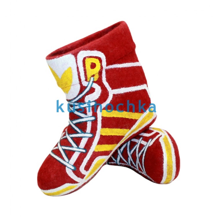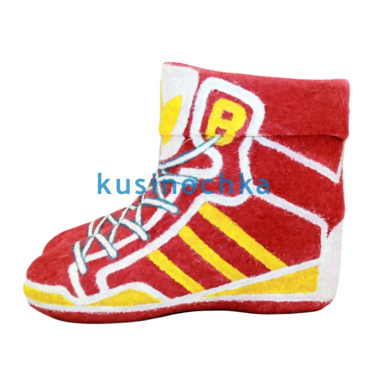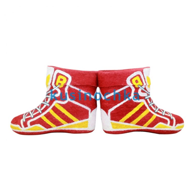 Полуваленки ручной валки на красной основе, с рисунком, имитирующим дизайн современных кроссовок: